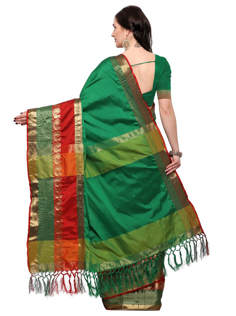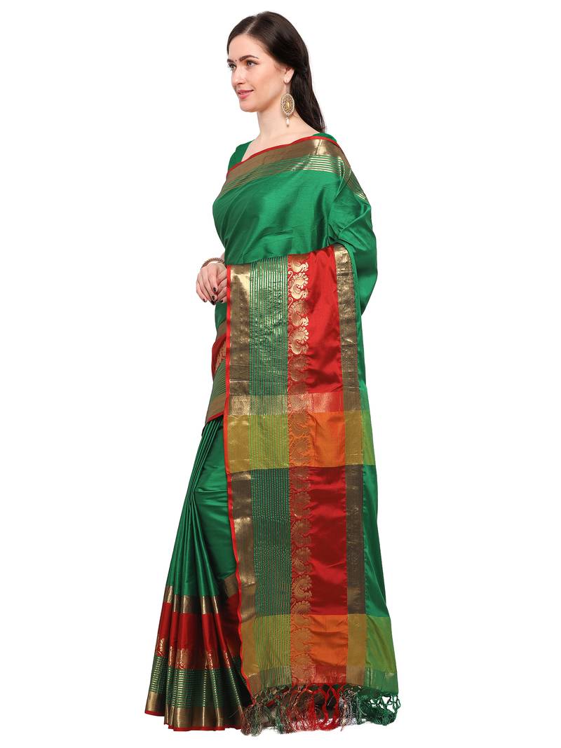 | Product Name | Green Woven Silk Cotton Saree With Blouse | |