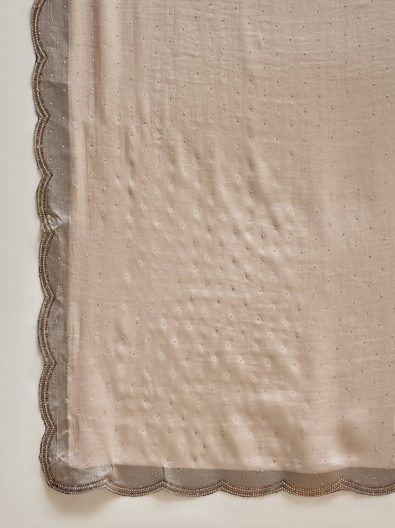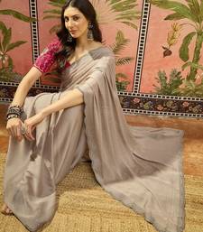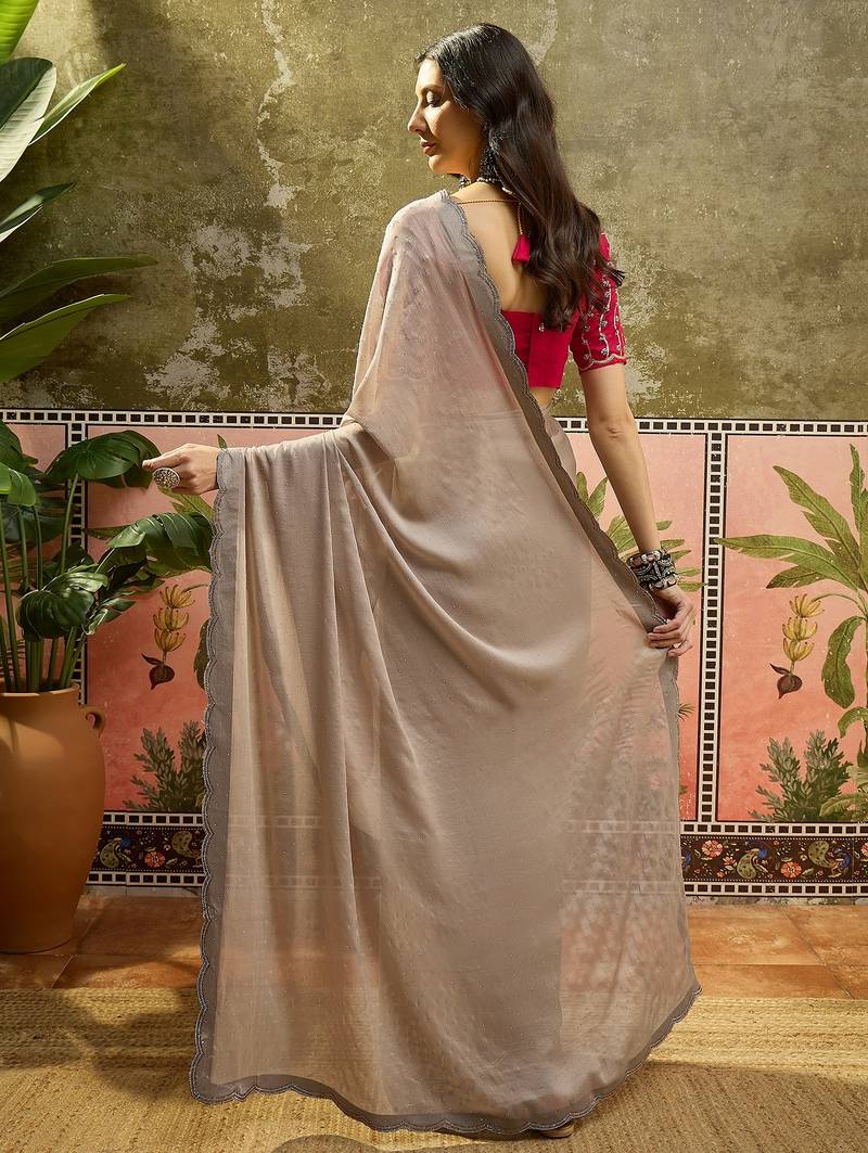 Grey chiffon embellisehd saree with unstitched blouse piece