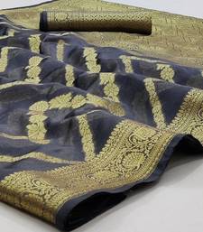 Grey woven organza saree with blouse