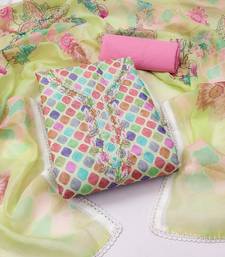 Kimisha women's green cambric cotton hand work and printed dress material unstitched