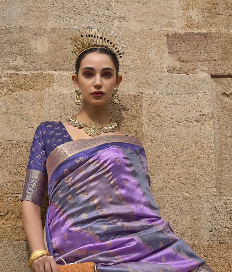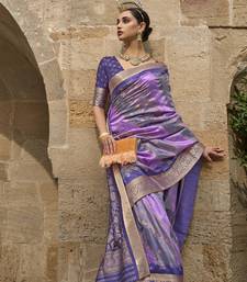 Kimisha women's purple silk saree with unstitched blouse piece