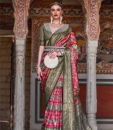 Kimisha women's red silk saree with unstitched blouse piece