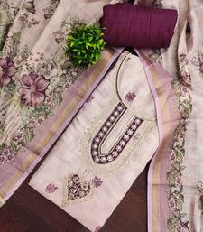 Lavender linen cotton printed unstitched dress material