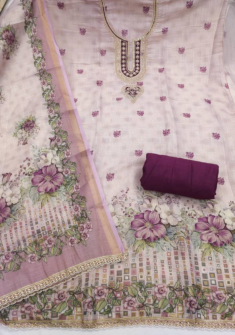| Product Name | Lavender Linen Cotton Printed Unstitched Dress Material | |