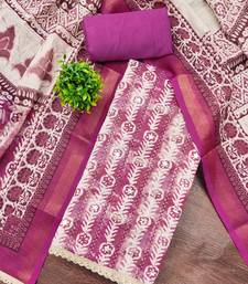 Magenta linen cotton printed unstitched dress material