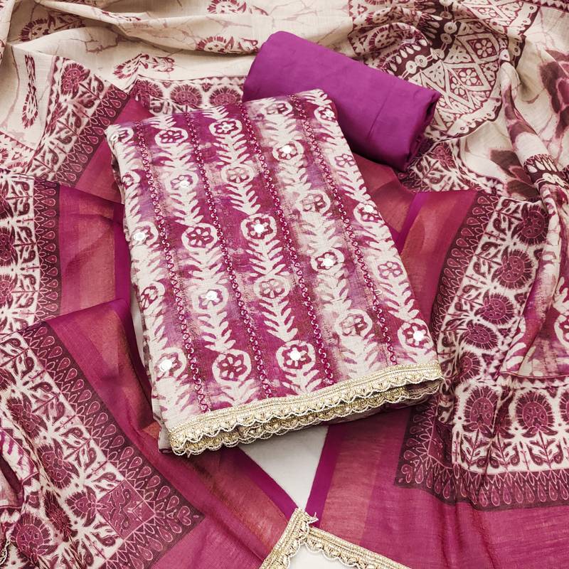 | Product Name | Magenta Linen Cotton Printed Unstitched Dress Material | |