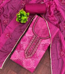 Magenta organza embellished unstitched dress material