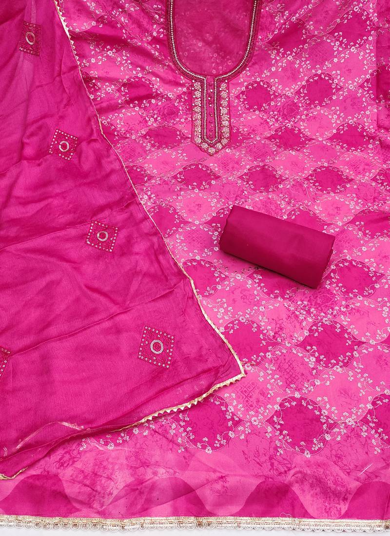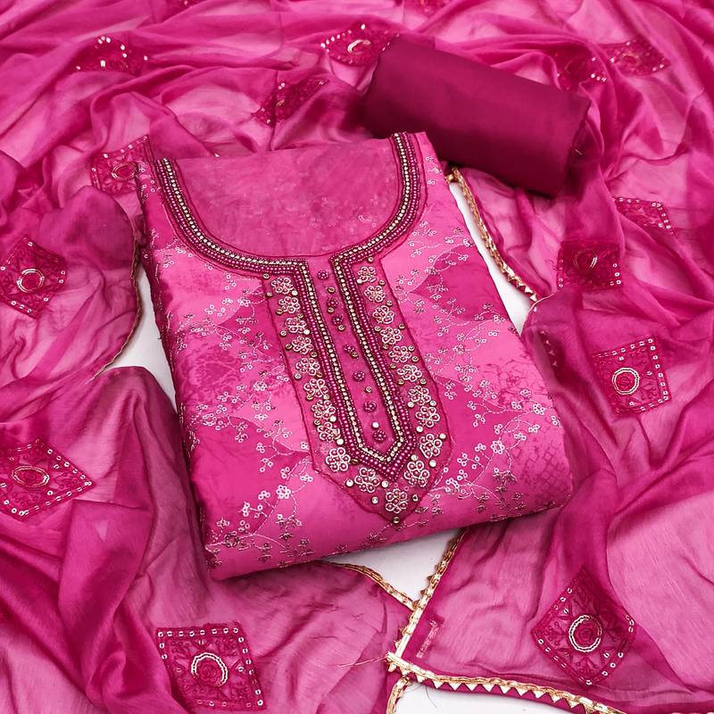 | Product Name | Magenta Organza Embellished Unstitched Dress Material | |