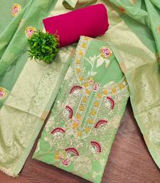 Mint banarasi cotton woven unstitched dress material