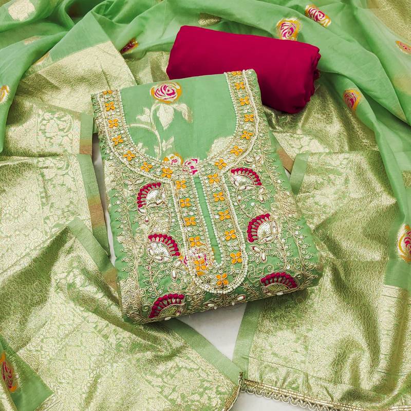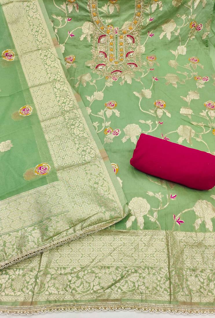 | Product Name | Mint Banarasi Cotton Woven Unstitched Dress Material | |