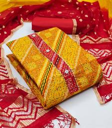 | Product Description | Kimisha Presents Beautifully Designed & Latest In Trends Women's Ethnic Cotton Unstitched Straight Suit. It Is Available In Free Size And Can Be Stitched To Suit Your Measurements. It Is Alterable Up To Chest Size Of 46, Comes With Shibori Dupatta And Plain Cotton Un Stitched Bottom. This Dress Would Add Elegance To Your Look. Wear It At Any Occasion By Pairing It With Matching Ethnic Jewelary Like Ethnic Jumkas And Ethnic Footwear Like Mojaris And Juties To Get Complete Ethnic As Well As Fab Festive Look & Get Complimented For Your Impressive Choice. |