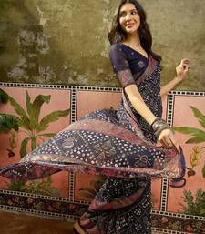 Navy blue georgette bandhni saree with unstitched blouse piece