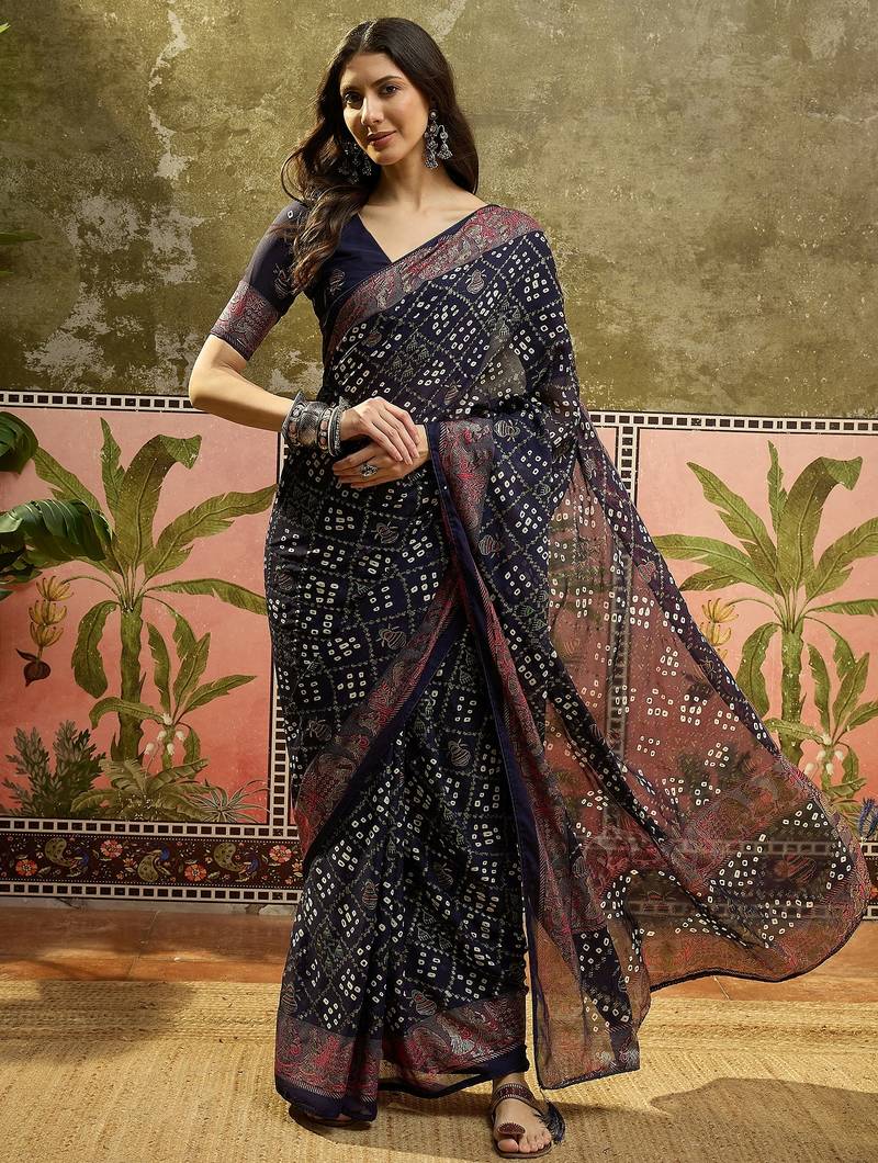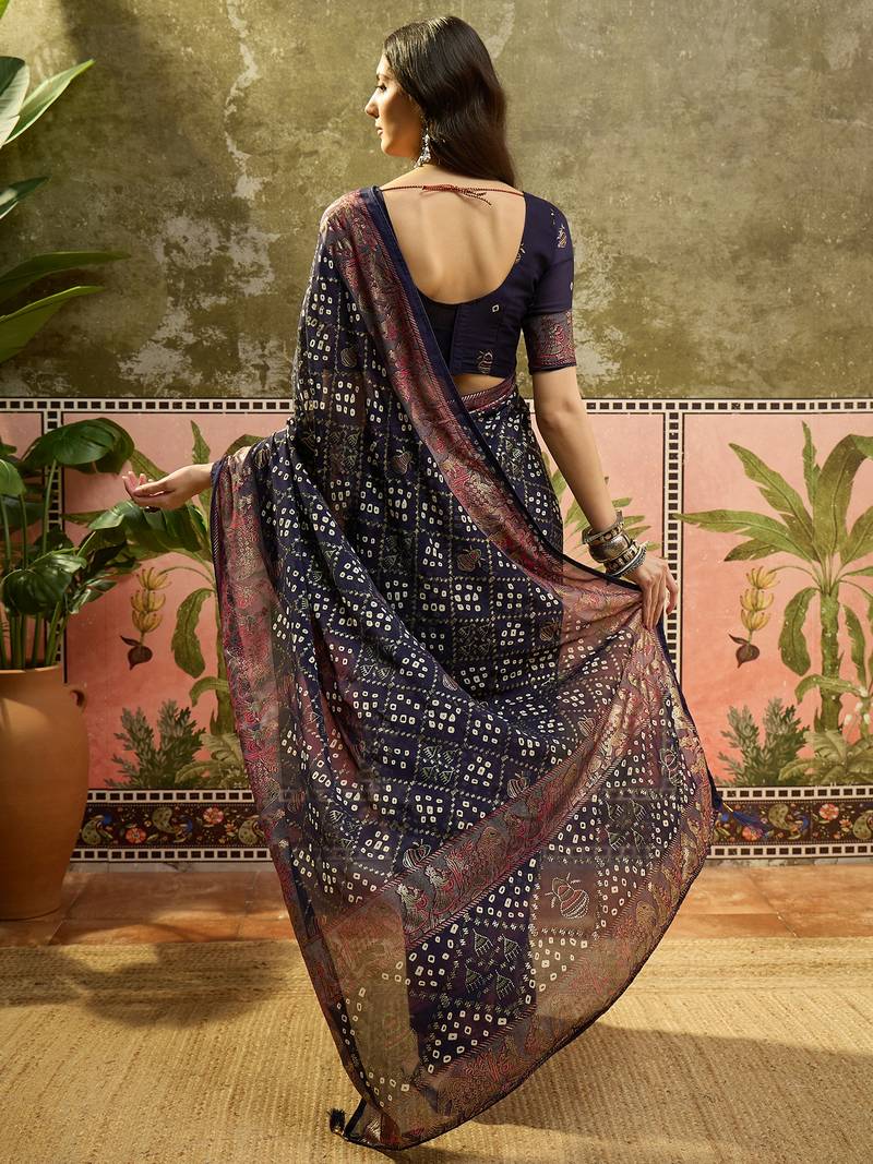 | Product Name | Navy Blue Georgette Bandhni Saree With Unstitched Blouse Piece | |