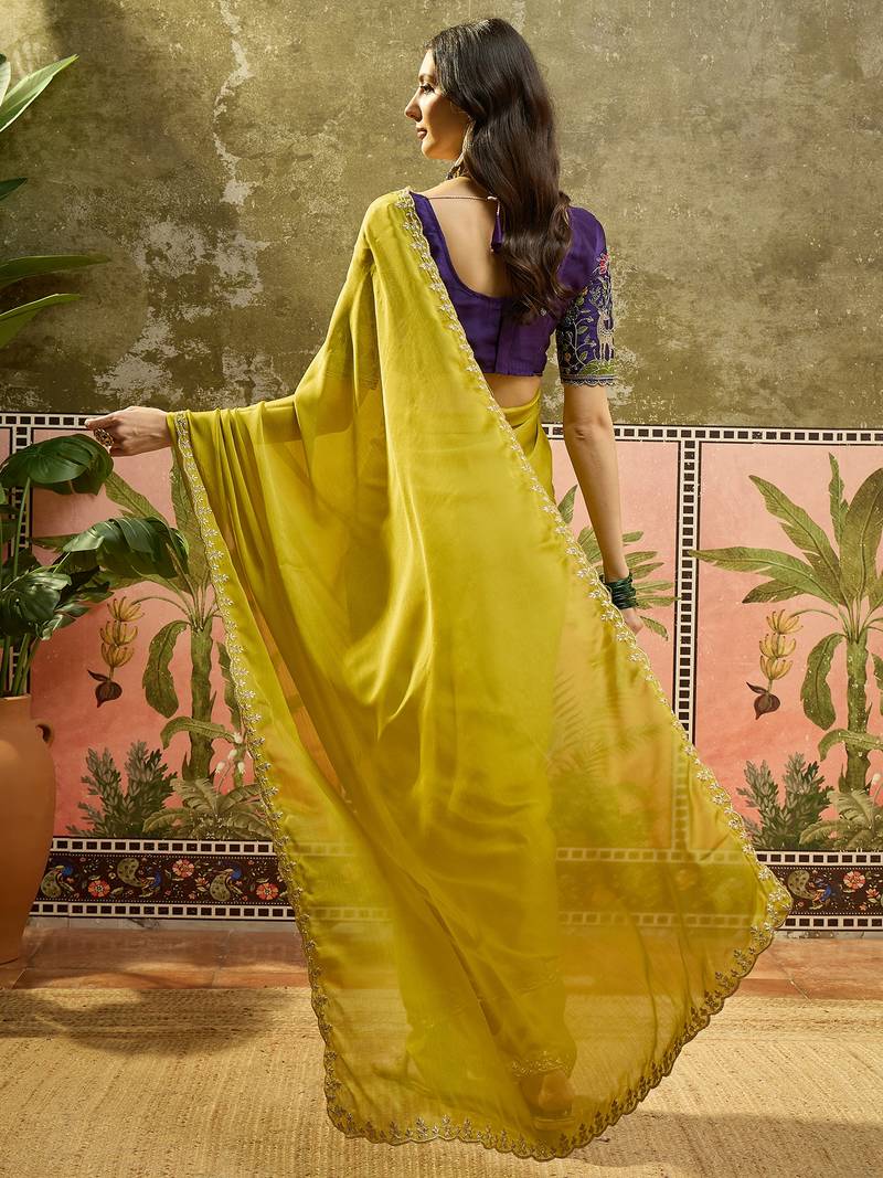 | • | Saree | : | Color- Dark Lime / Fabric- Chiffon |