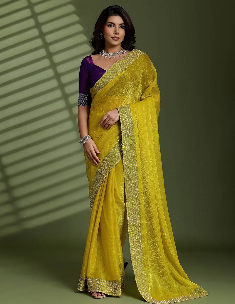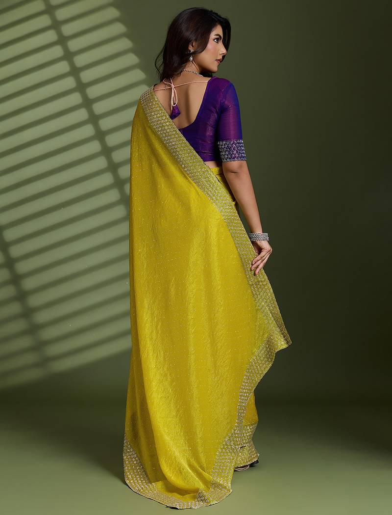 Neon silk chiffon embellished saree with unstitched blouse piece