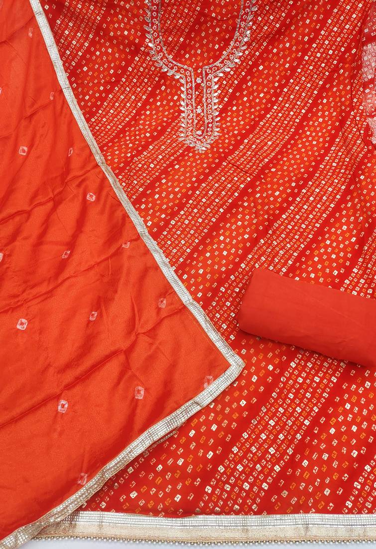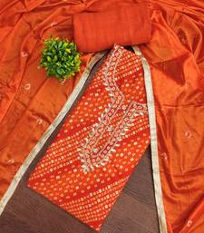 Orange cotton bandhni unstitched dress material