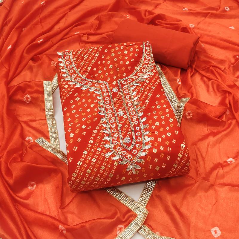 | Product Name | Orange Cotton Bandhni Unstitched Dress Material | |