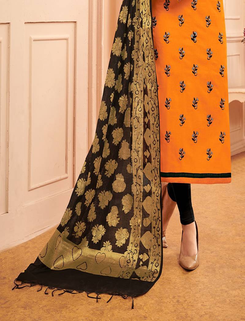 | Product Description | Kimisha Brings You This Beautifully Designed Women's Dress Material Which Has Been Made Of Premium Quality Fabric That Gives It A Classy Finish And Also Makes It Easy To Maintain. It Comes Glace Slub Cotton With Pure Banarasi Dupatta Having Fancy Tussels & Plain Cotton Un Stitched Bottom. It Comes With An Embroidered Patterns Unstitched Salwar Suit That Makes It Look Attractive. The Classy Colour Combination Further Adds To The Appeal Of The Ensemble. |