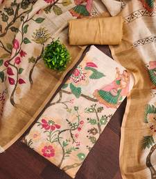 Orange linen cotton printed unstitched dress material