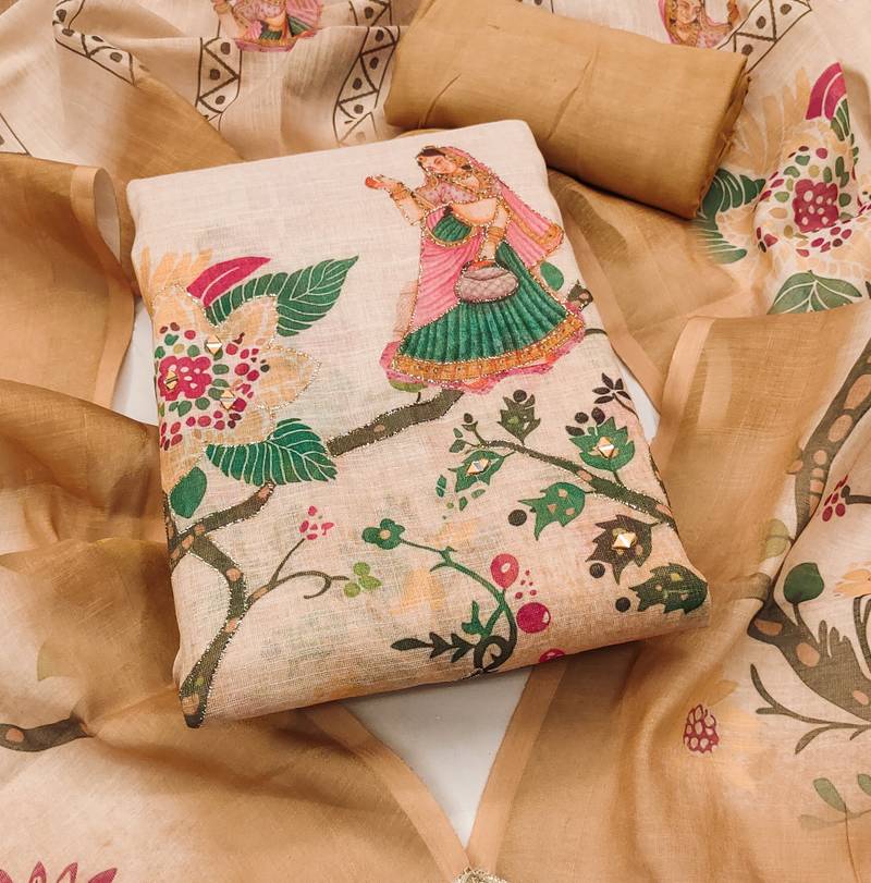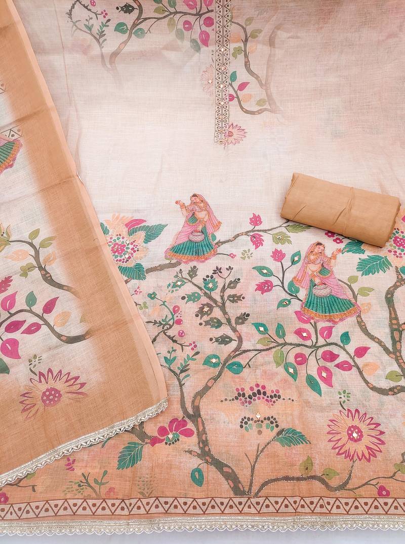 | Product Name | Orange Linen Cotton Printed Unstitched Dress Material | |