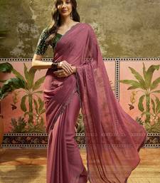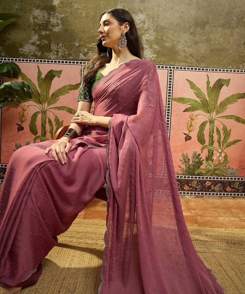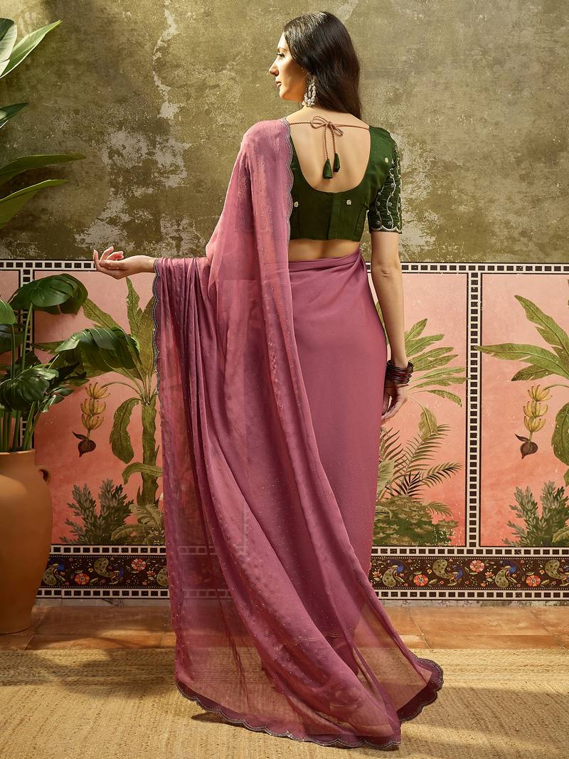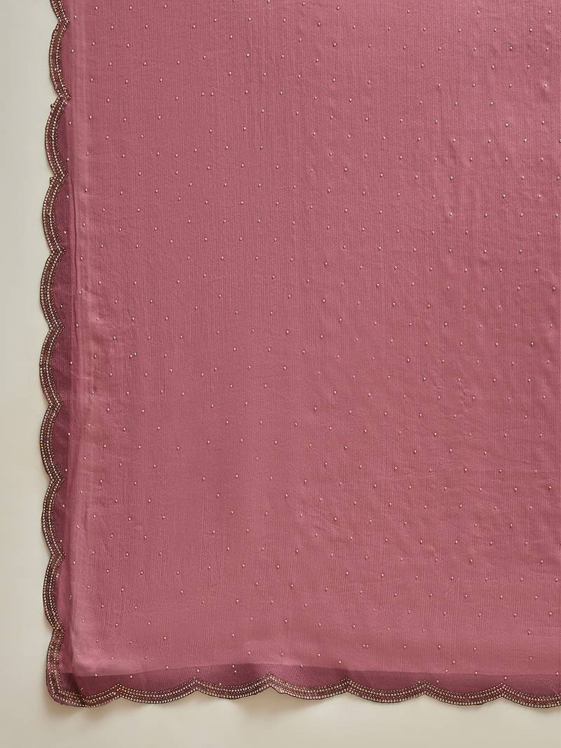 Pink chiffon embellisehd saree with unstitched blouse piece