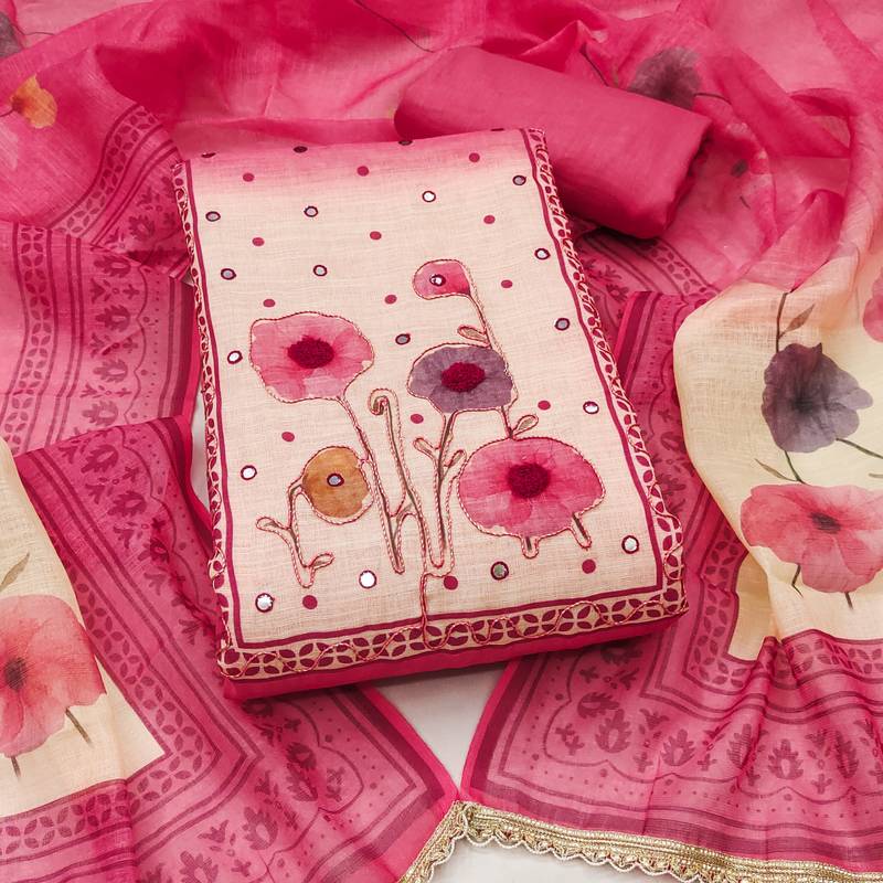 | Product Name | Pink Linen Cotton Printed Unstitched Dress Material | |
