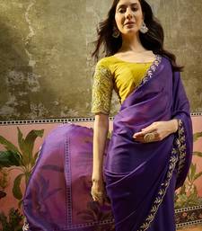 Purple neon chiffon embroidered saree with unstitched blouse piece