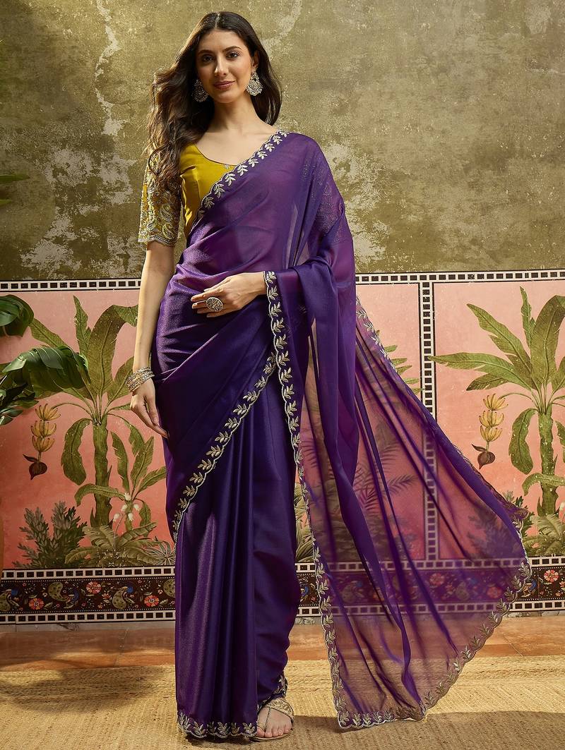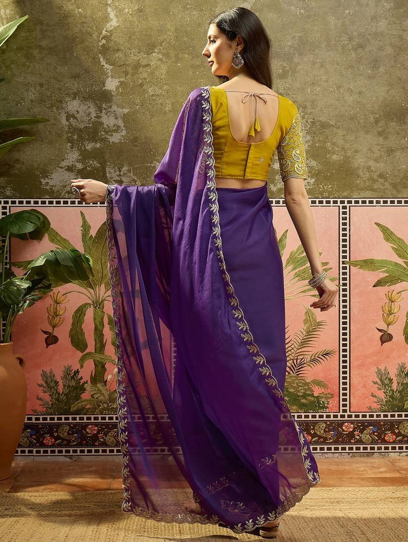 | Product Name | Purple Neon Chiffon Embroidered Saree With Unstitched Blouse Piece | |
