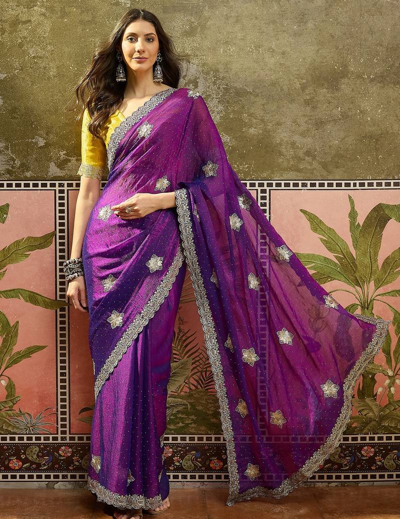 | Product Name | Purple Silk Chiffon Embellished Saree With Unstitched Blouse Piece | |