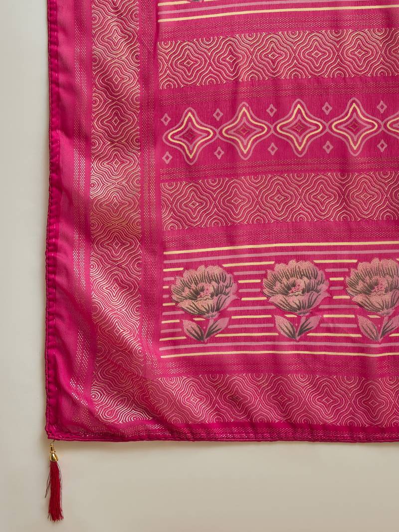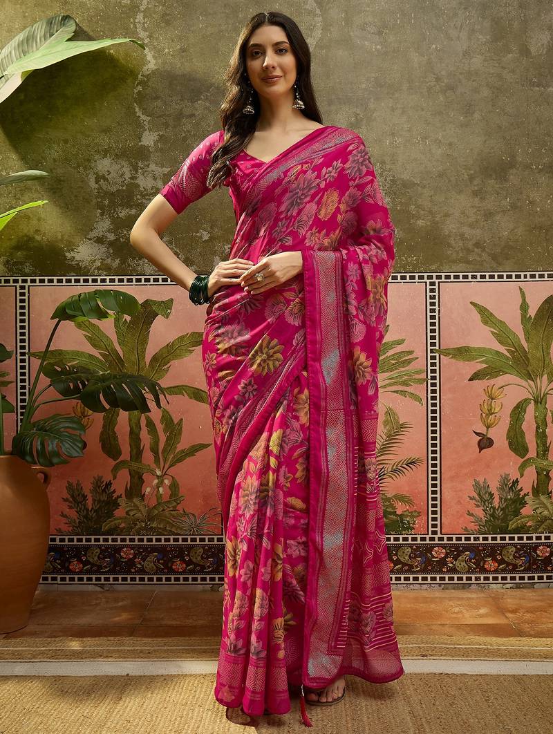 | • | Saree | : | Color- Rani Pink / Fabric- Georgette |