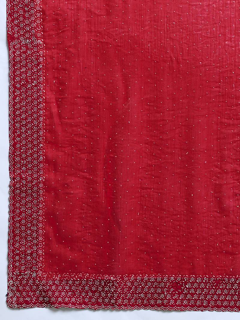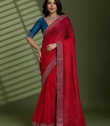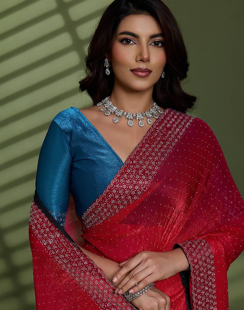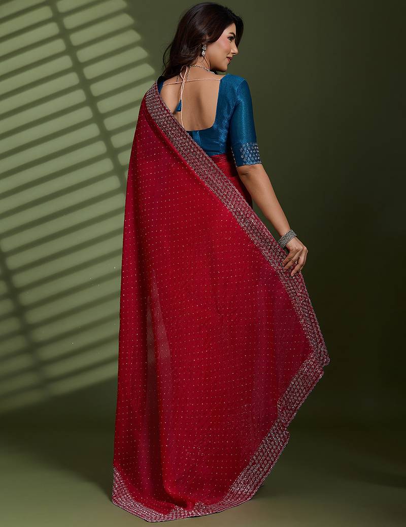Rani silk chiffon embellished saree with unstitched blouse piece