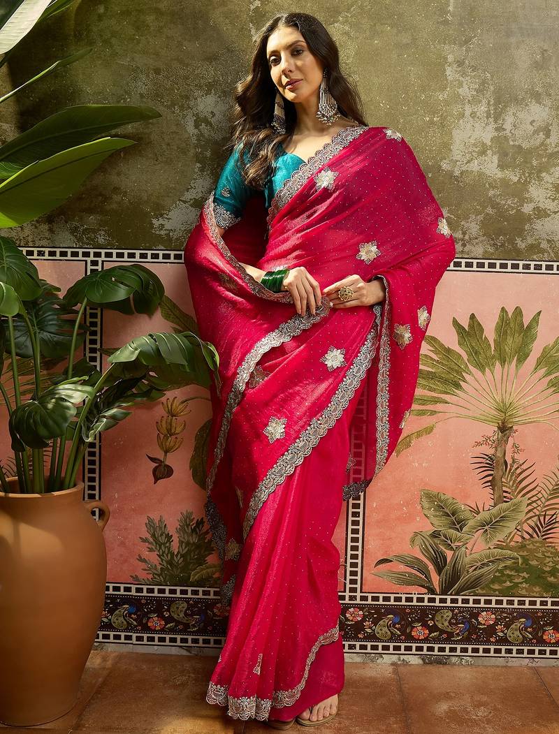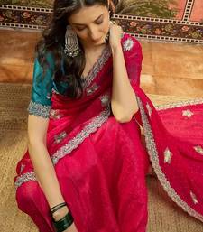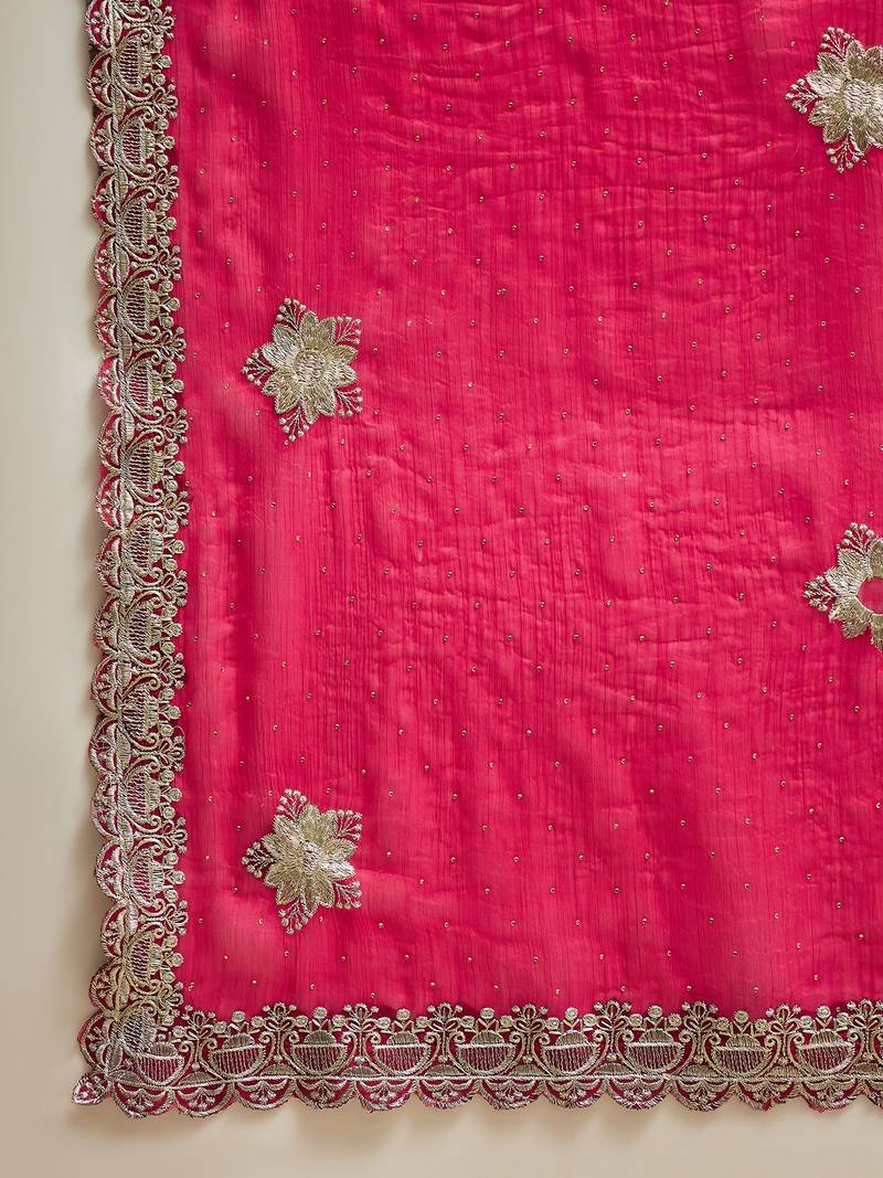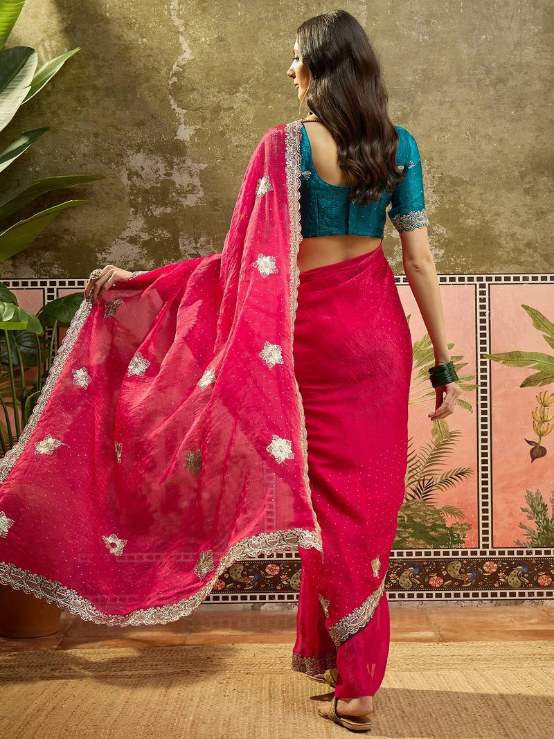 Rani silk chiffon embellished saree with unstitched blouse piece