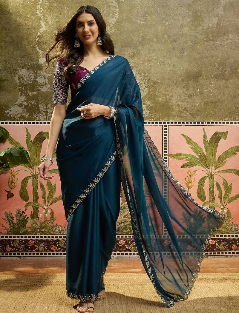 | Product Name | Teal Neon Chiffon Embroidered Saree With Unstitched Blouse Piece | |