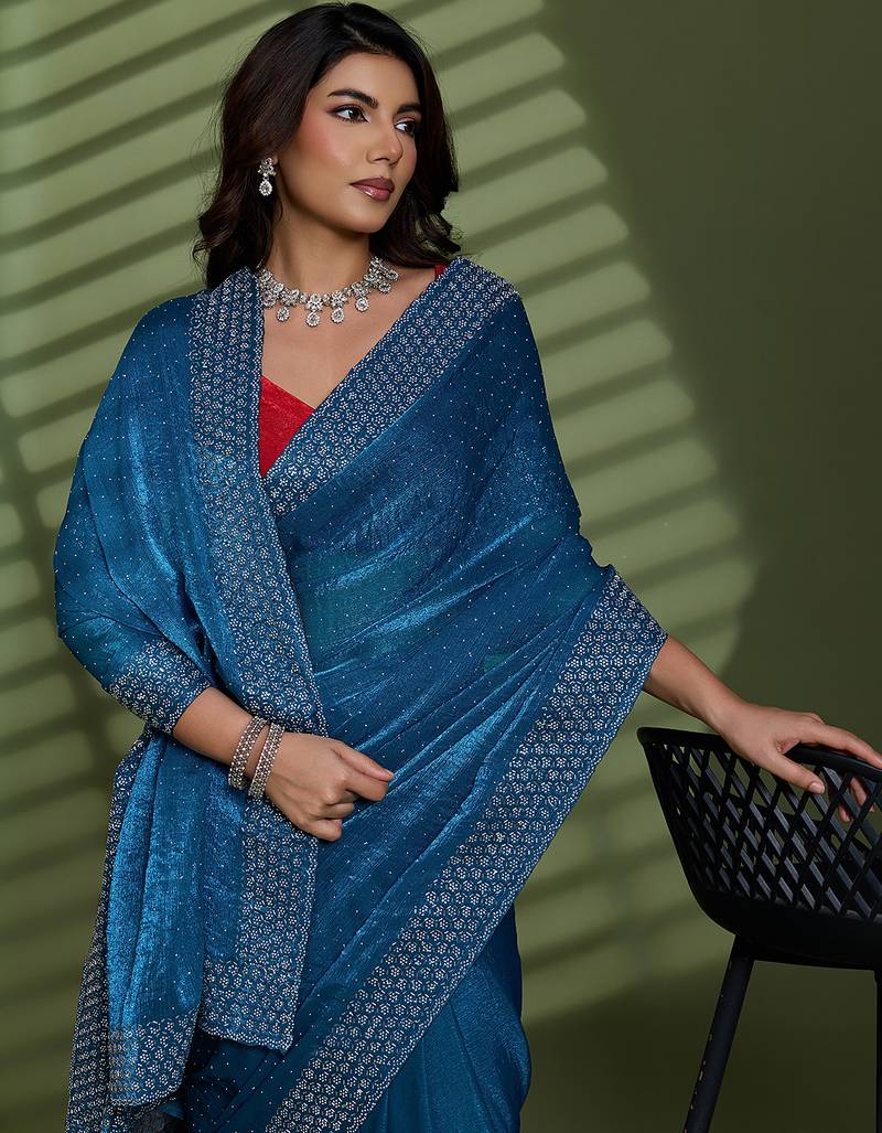 | Product Name | Teal Silk Chiffon Embellished Saree With Unstitched Blouse Piece | |