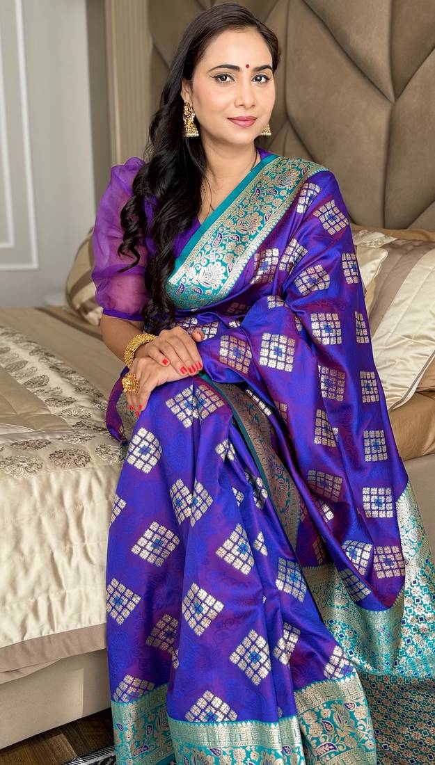 | Product Name | Violet Silk Banarasi Woven Saree With Unstitched Blouse Piece | |