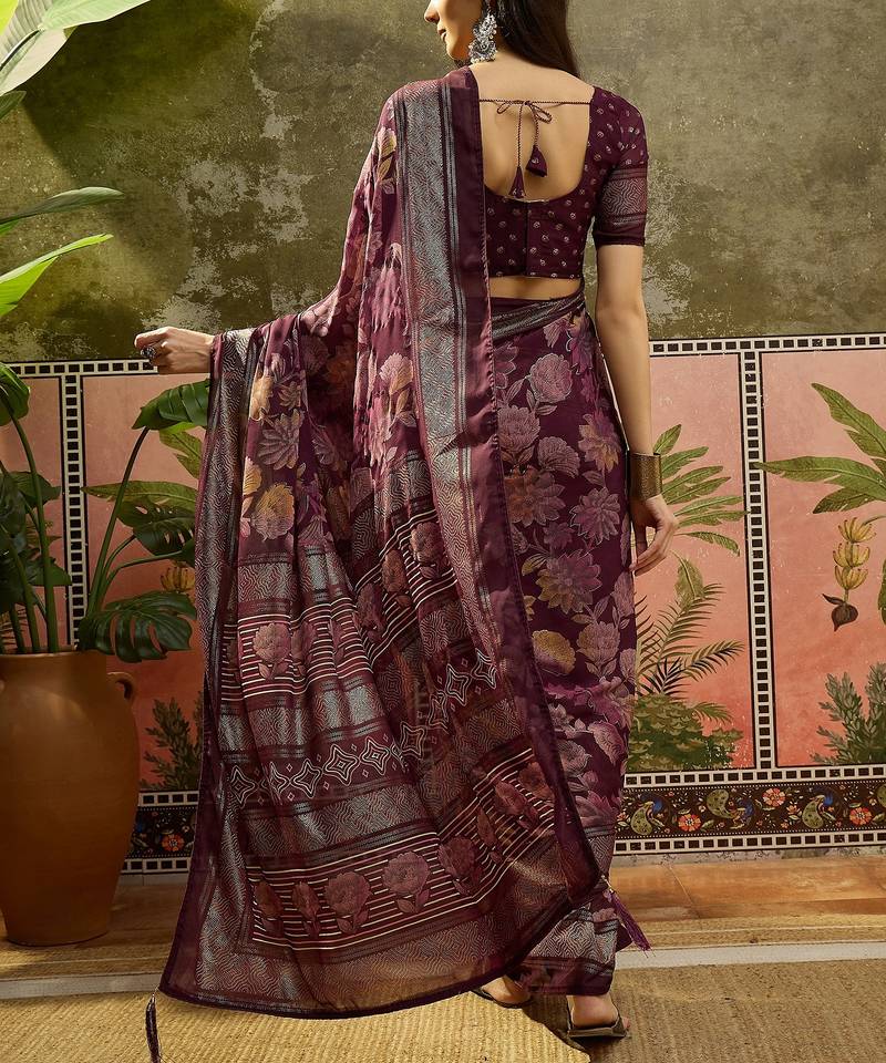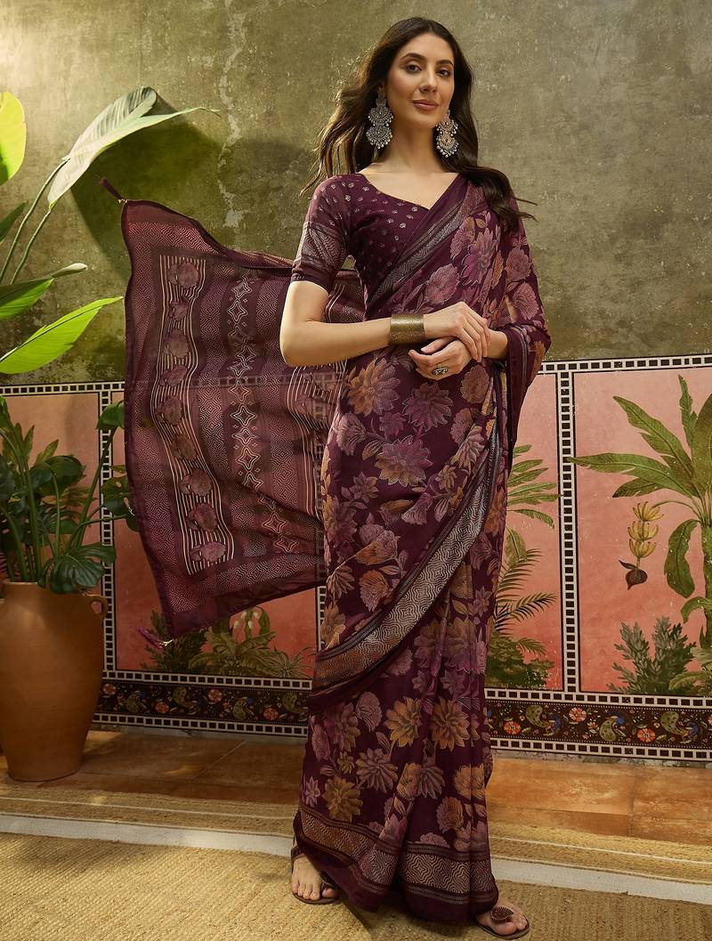 | Product Name | Wine Georgette Bandhni Saree With Unstitched Blouse Piece | |