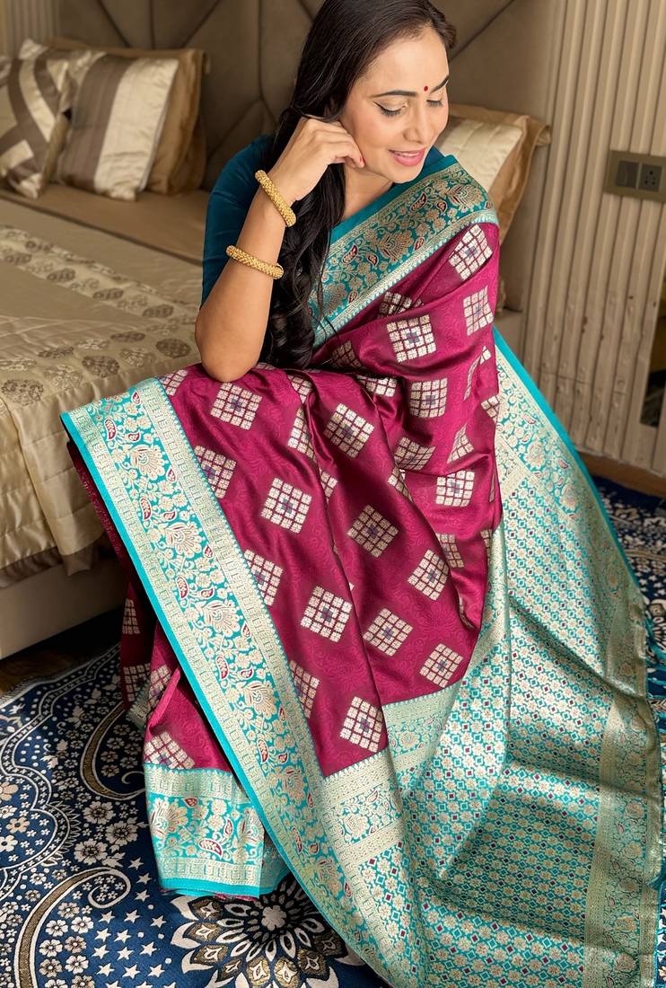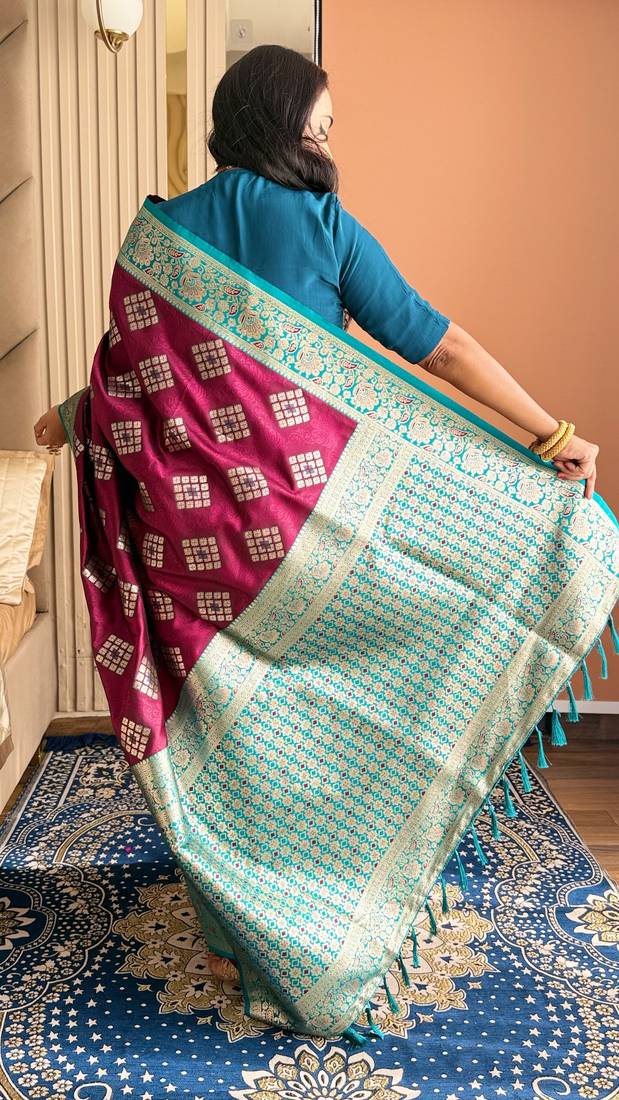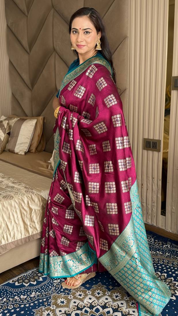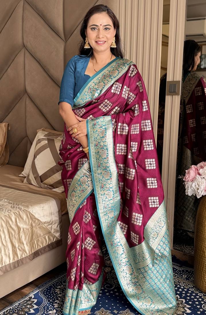 | Product Name | Wine Silk Banarasi Woven Saree With Unstitched Blouse Piece | |