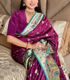 Wine silk paithani saree with unstitched blouse piece