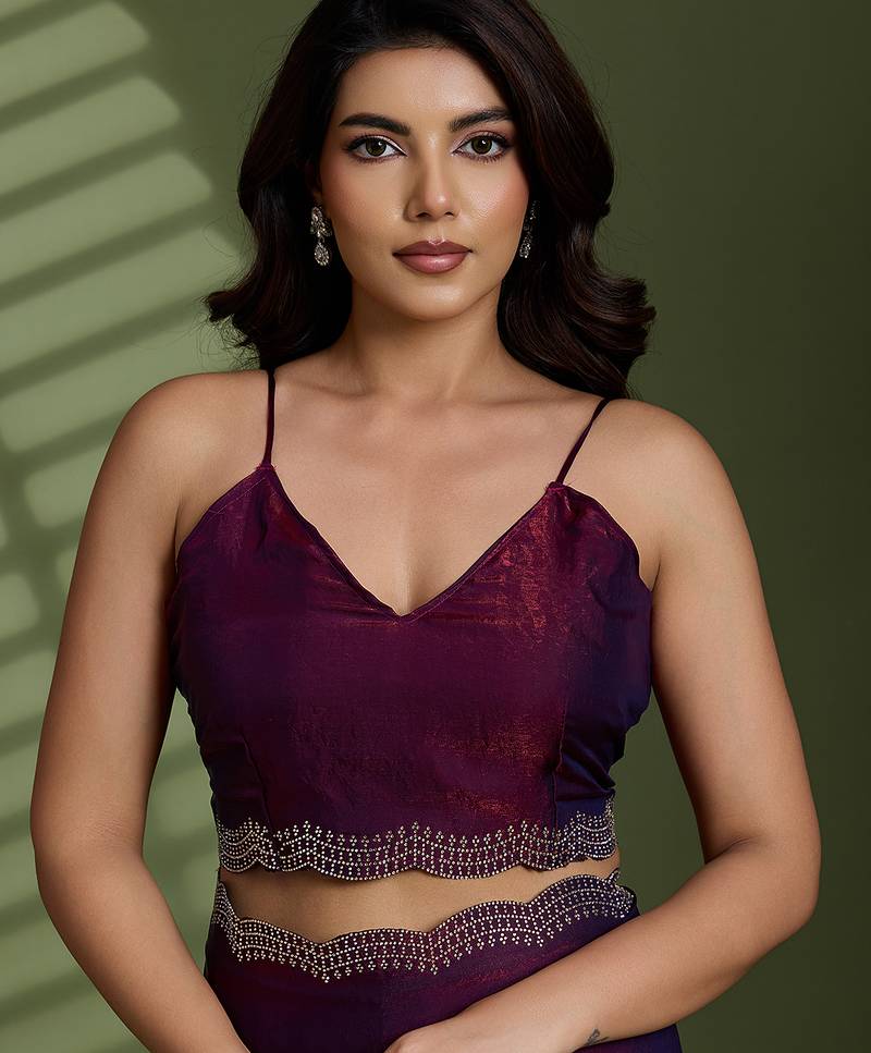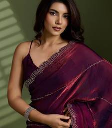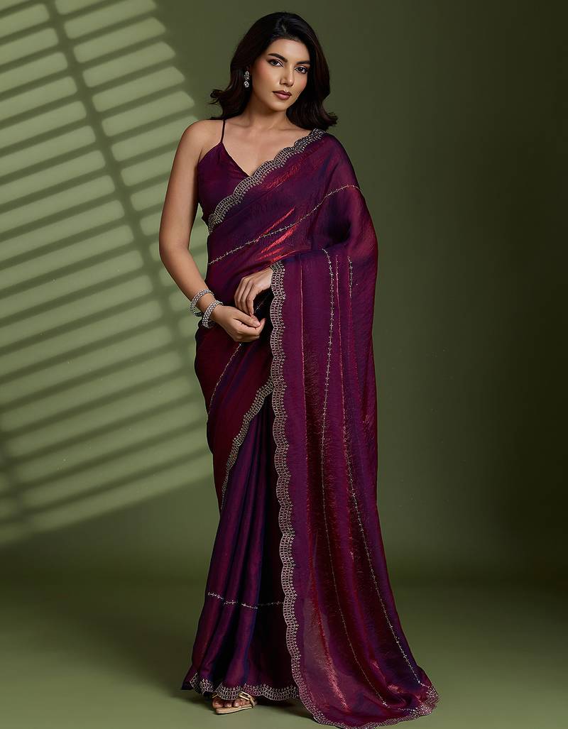 | Product Name | Wine Silk Satin Embellished Saree With Unstitched Blouse Piece | |