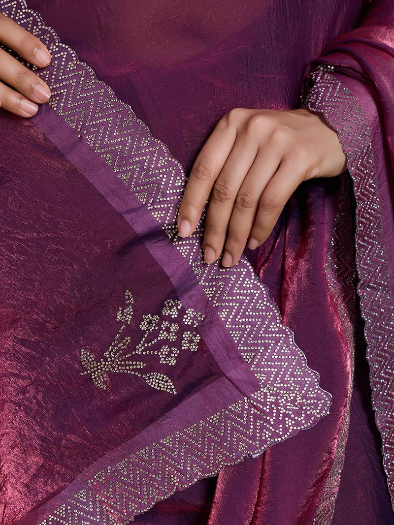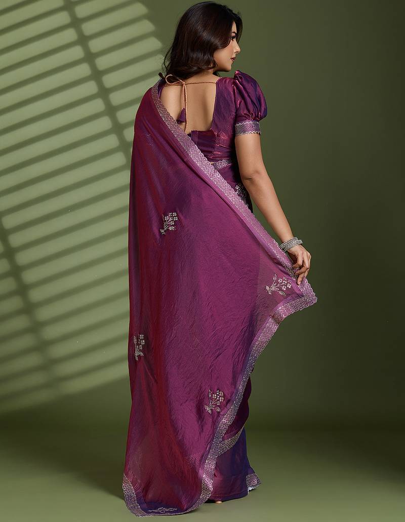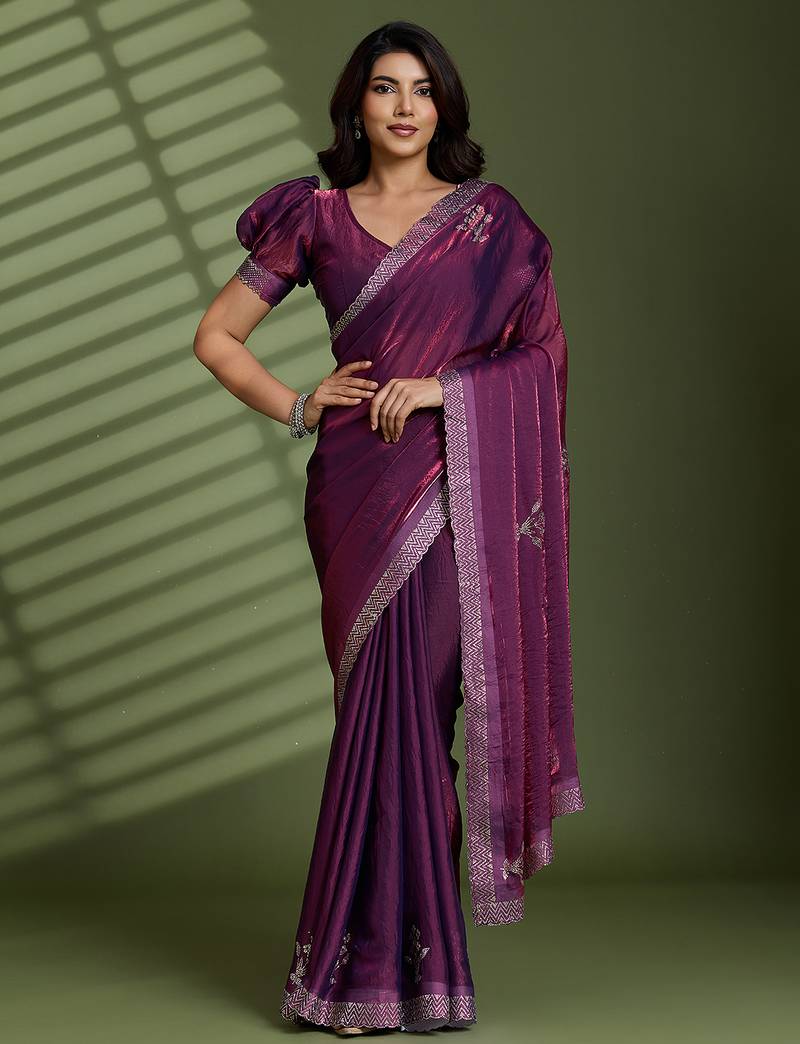| Product Name | Wine Silk Satin Embellished Saree With Unstitched Blouse Piece | |