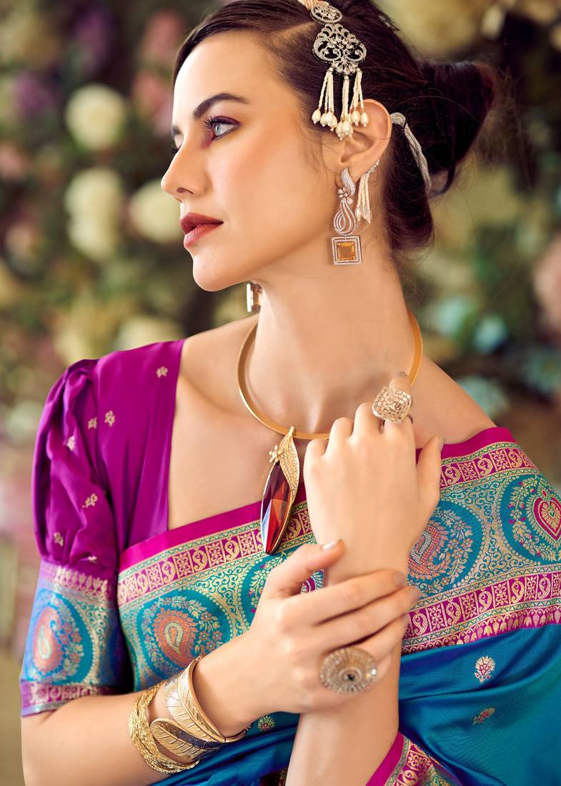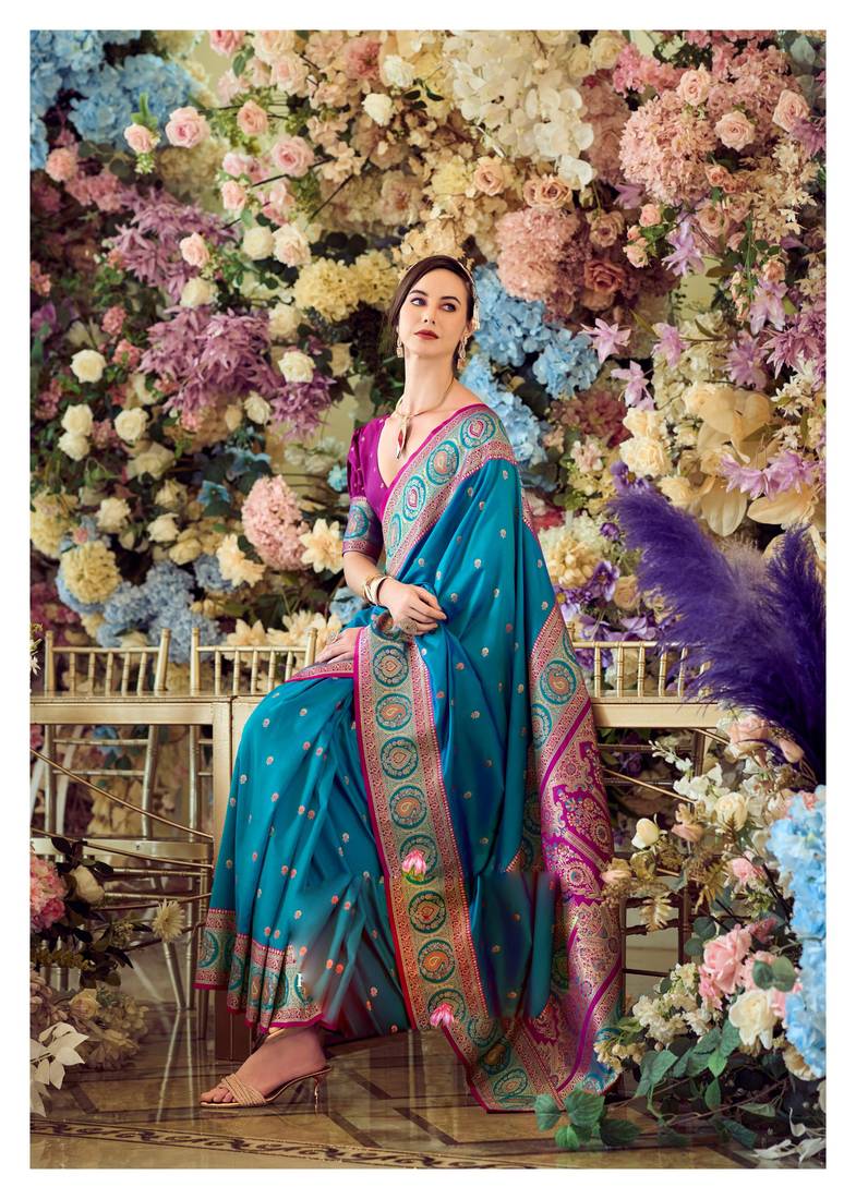 | Product Name | Teal Banarasi Silk Blend Saree With Unstitched Blouse | |