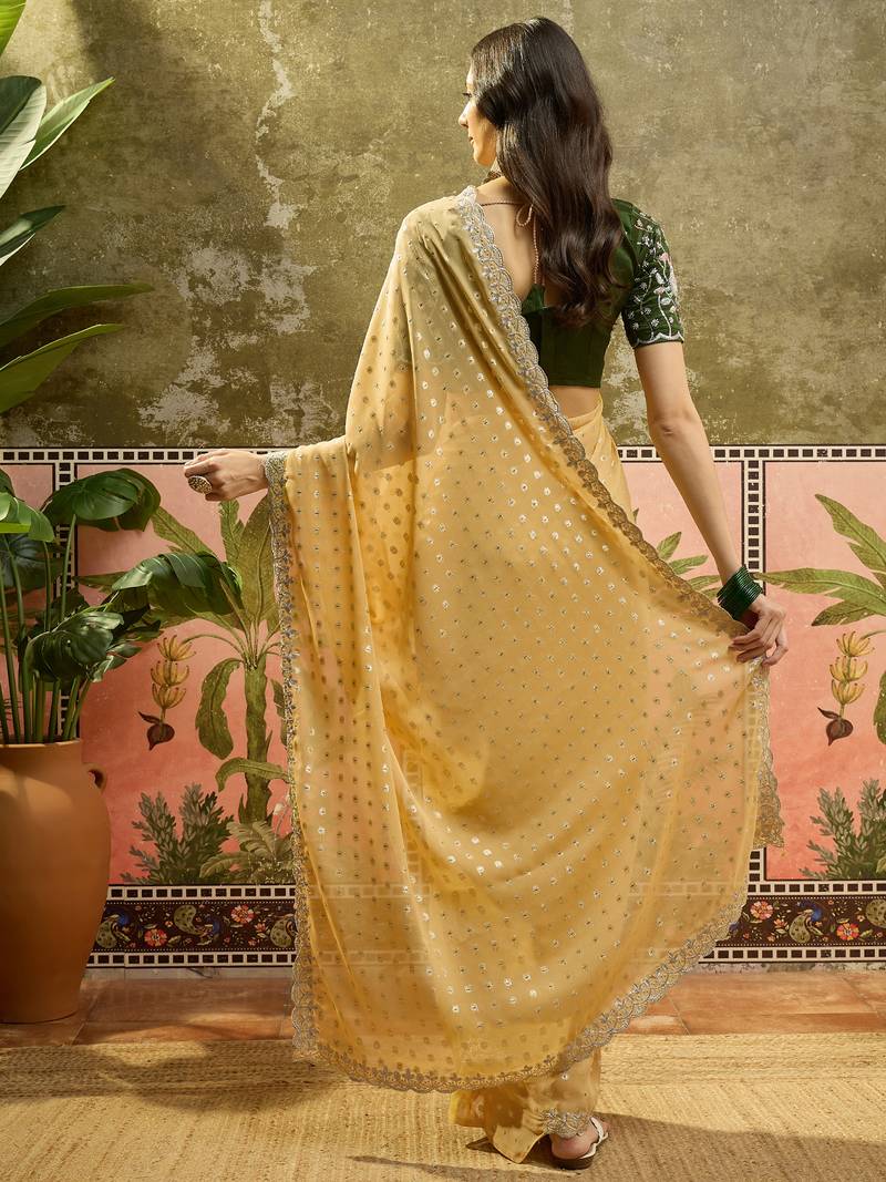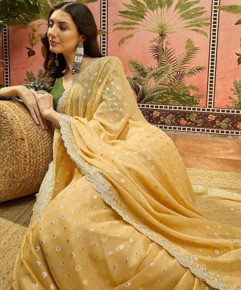 | Product Name | Yellow Georgette Embroidered Saree With Unstitched Blouse Piece | |