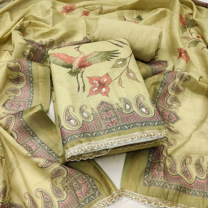 | Product Name | Yellow Linen Cotton Printed Unstitched Dress Material | |