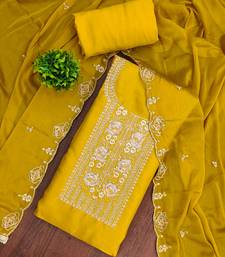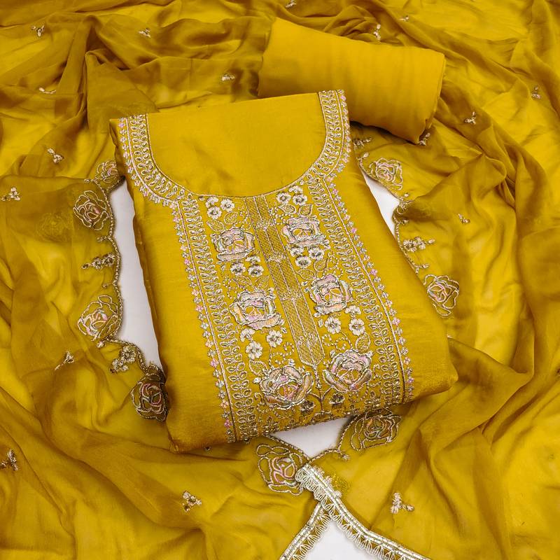 Product Name Yellow Viscose Embroidered Unstitched Dress Material