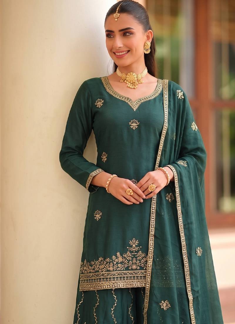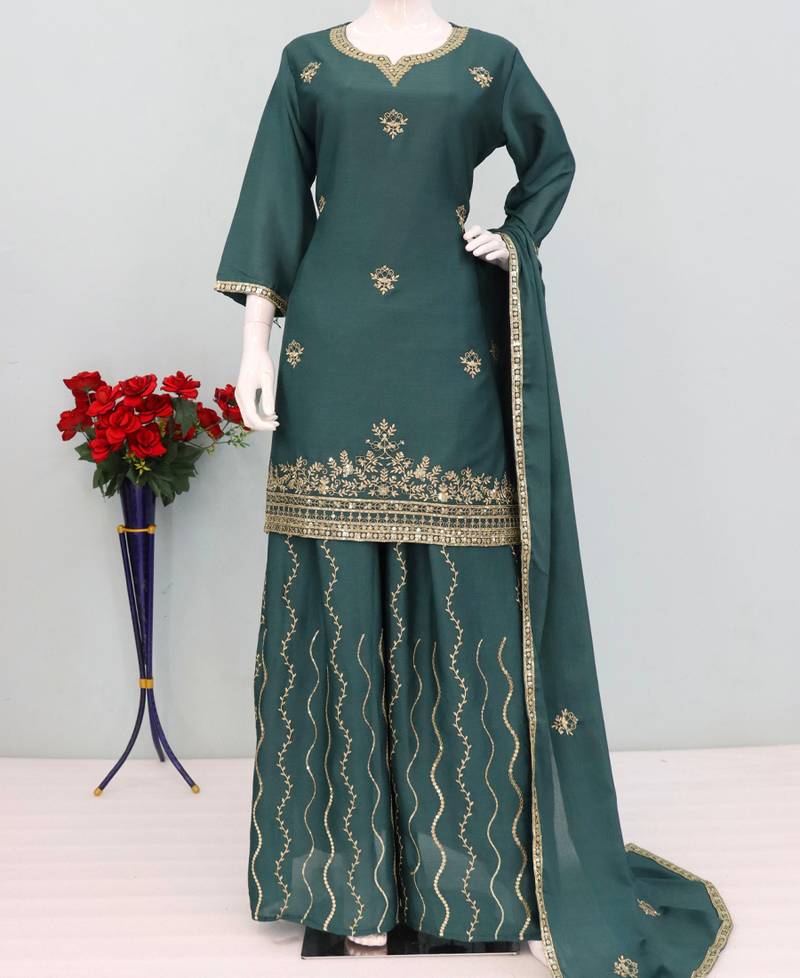 | Product Name | Green Ethnic Wear Ready Made Chinon Suit For Women | |