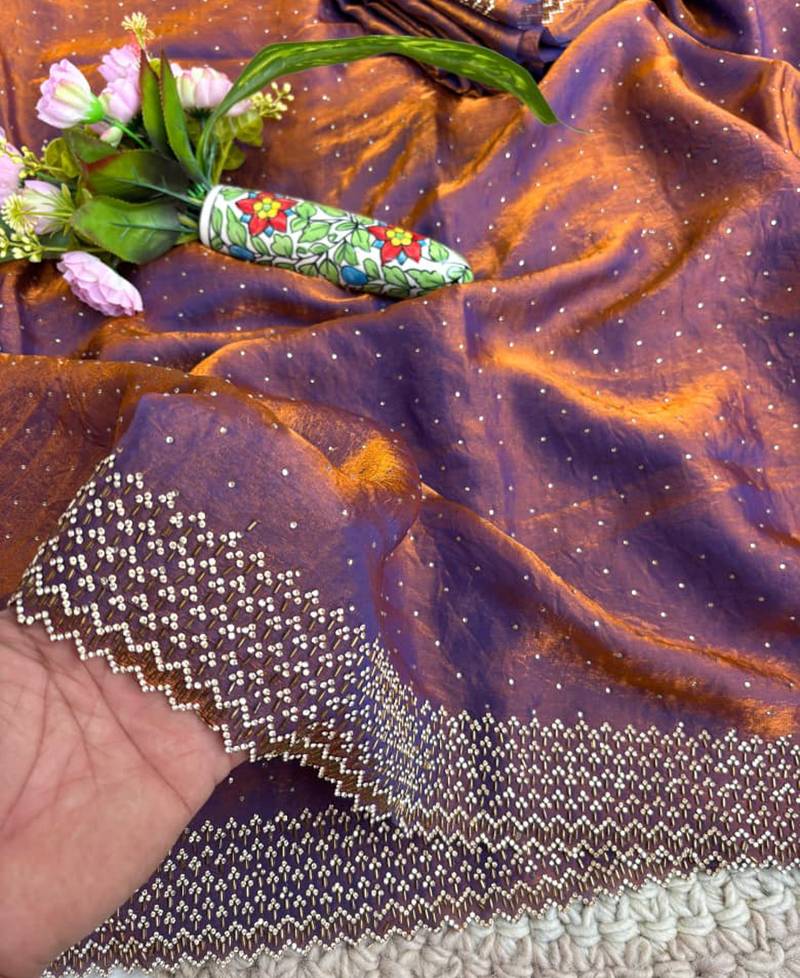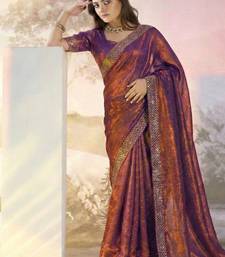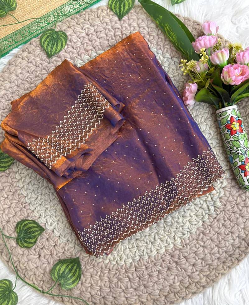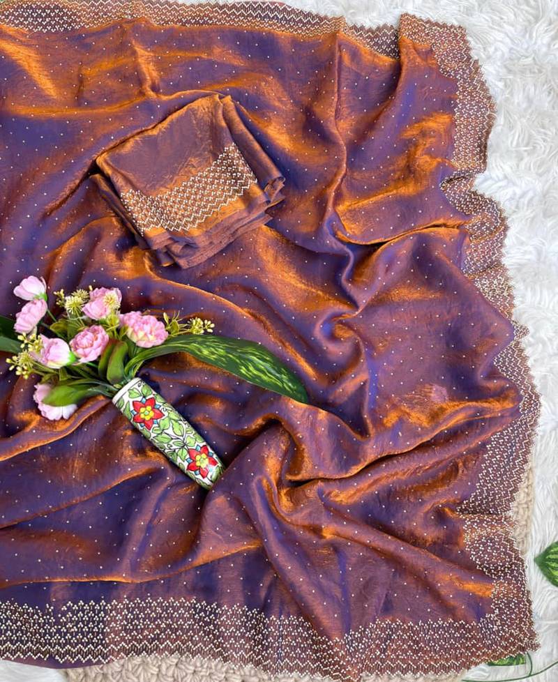 Lilac fandy satin heavy diamond work saree for women wedding wear