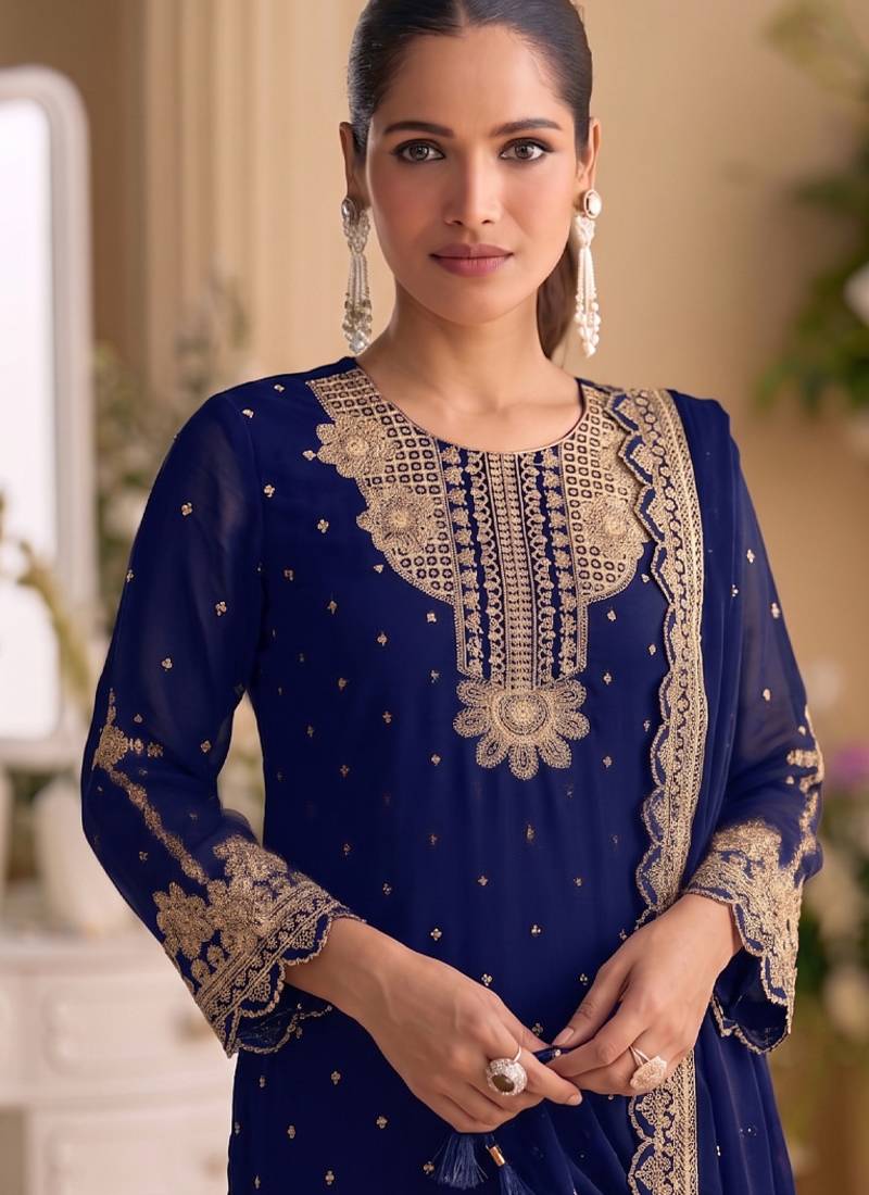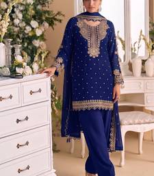 New georgette short salwar kameez pakistani style navy blue semi stitched