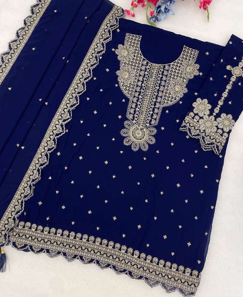 | • | Kameez | : | Color- Navy Blue / Fabric- Georgette |