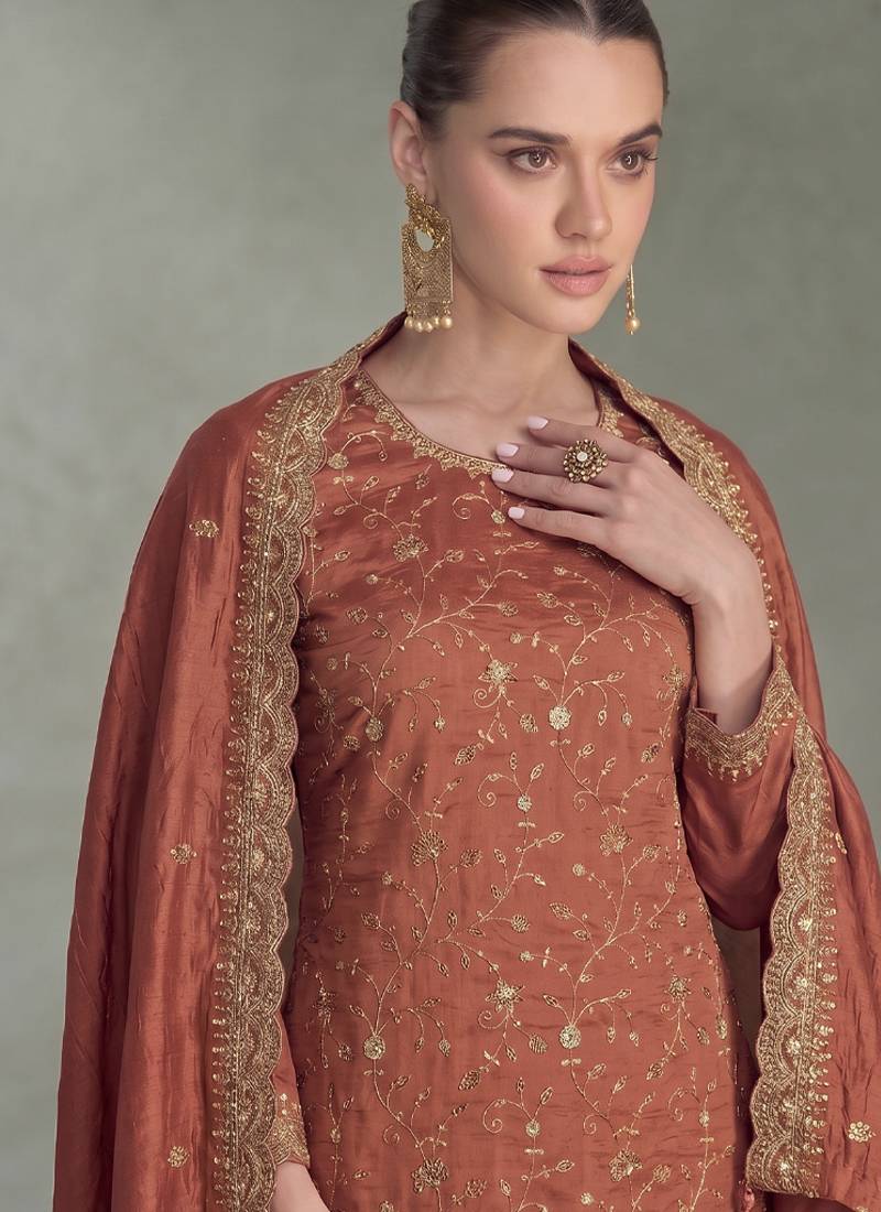 | Product Name | Peach Silk Straight Suit For Women Heavy Embroidery Work | |
