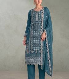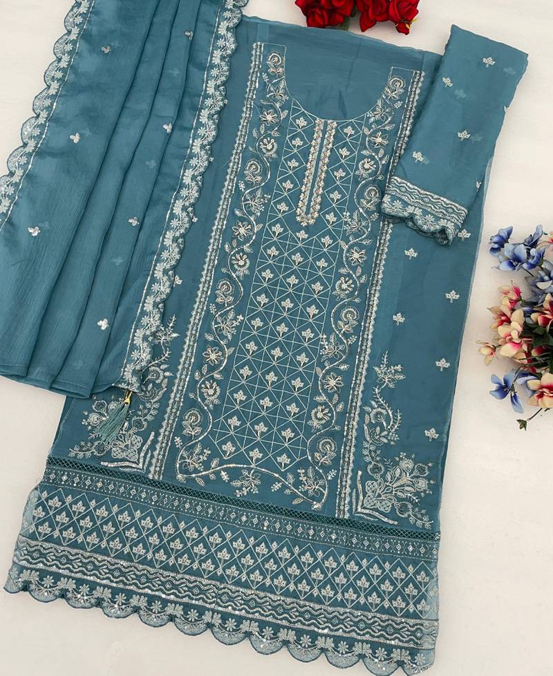 Sky blue pakistani straight suit for women chiffon semi stitched